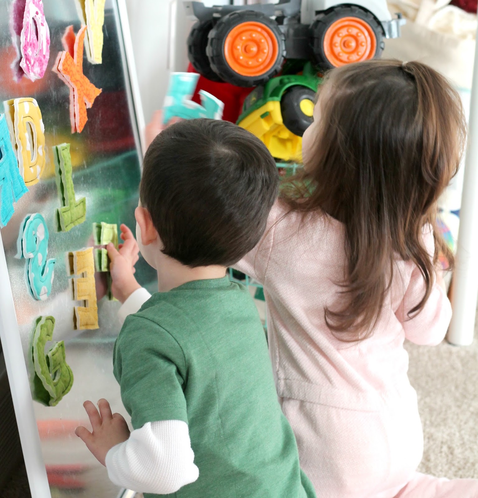 Recently, Jess was kind enough to send over a set of her Magnetic Alphabet Letters, which naturally were a huge hit with Max and Ella!